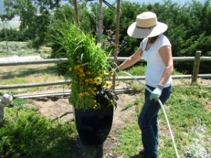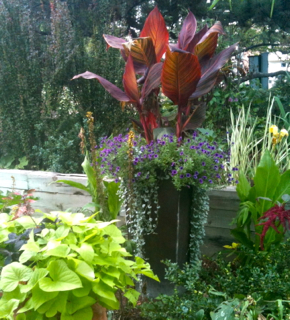 The soil is the foundation for the success or failure of the container planting. Good quality potting soil can not be overstressed. Filling your pot with dirt dug up in your garden will not enhance your chances of having a beautiful potted focal point. It will, however, increase your chances of introducing diseases and inferior quality soil to grow all those lovely new purchases in. I often tell my clients “Let me help you be successful”. In this case the recipe for success includes bagged potting soil that is a mix of sterilized soil and other quality ingredients. The best potting mixes include mycorrhizae and other additives that encourage healthy plant growth. Your local nursery can supply you with quality potting soil.