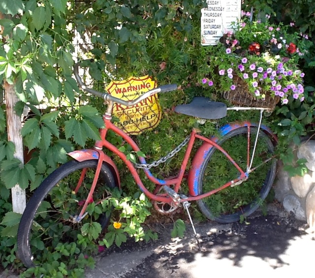 When I pulled up to Cricklewood I was immediately captured by the  old bicycle out front overflowing with flowers.