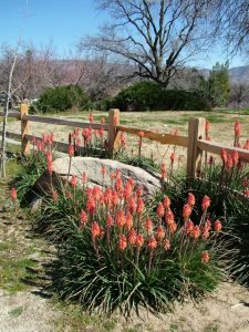 As I approached the house I was absolutely smitten with the Red-Hot-Pokers (Kniphofia uvaria). I think they are the winter blooming variety “Winter Cheer”